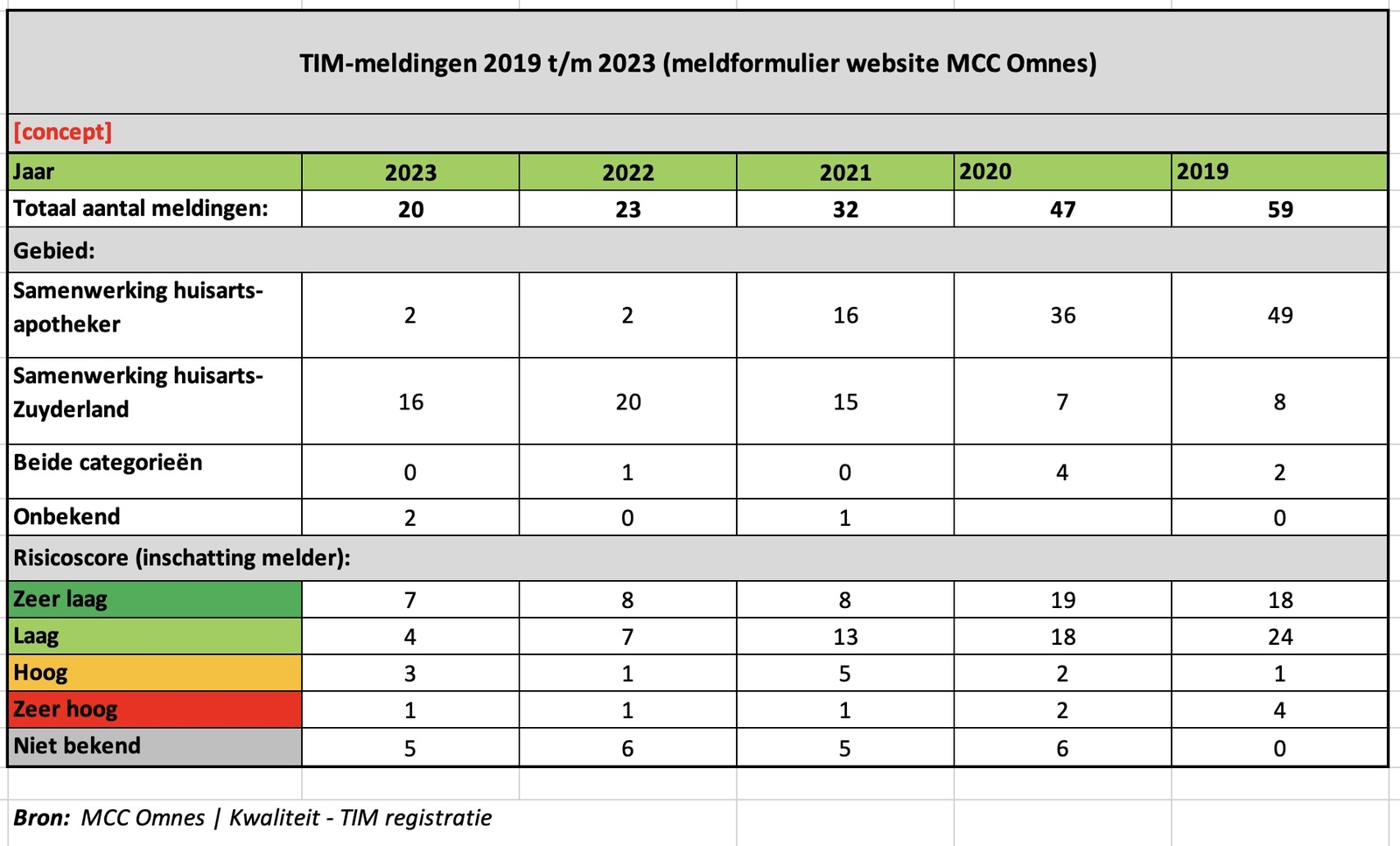In 2023 zijn er twintig kwesties gemeld via het formulier op de MCC Omnes-website. Zestien gingen er over de samenwerking huisarts-Zuyderland; twee over de samenwerking huisarts-apotheker.